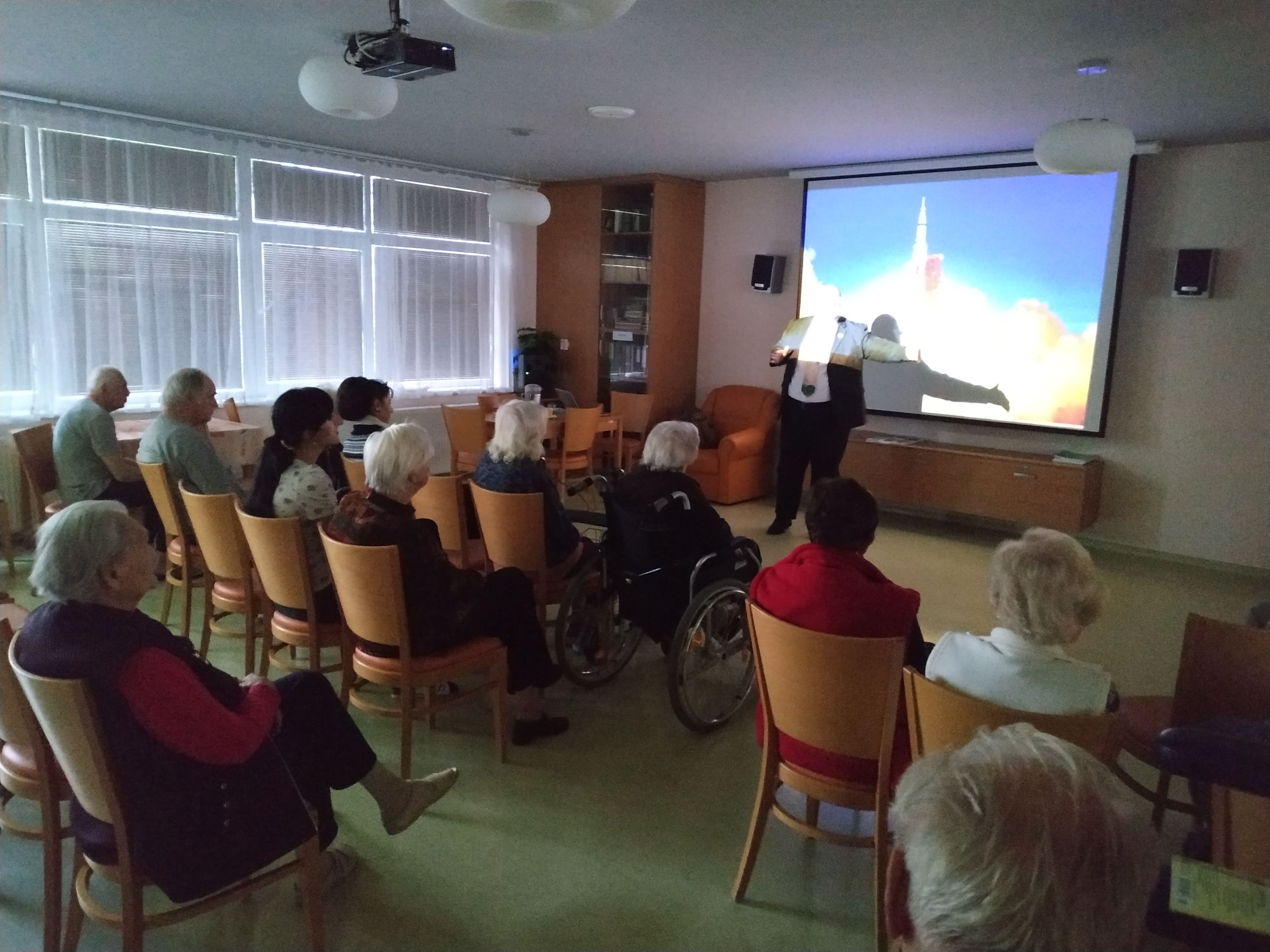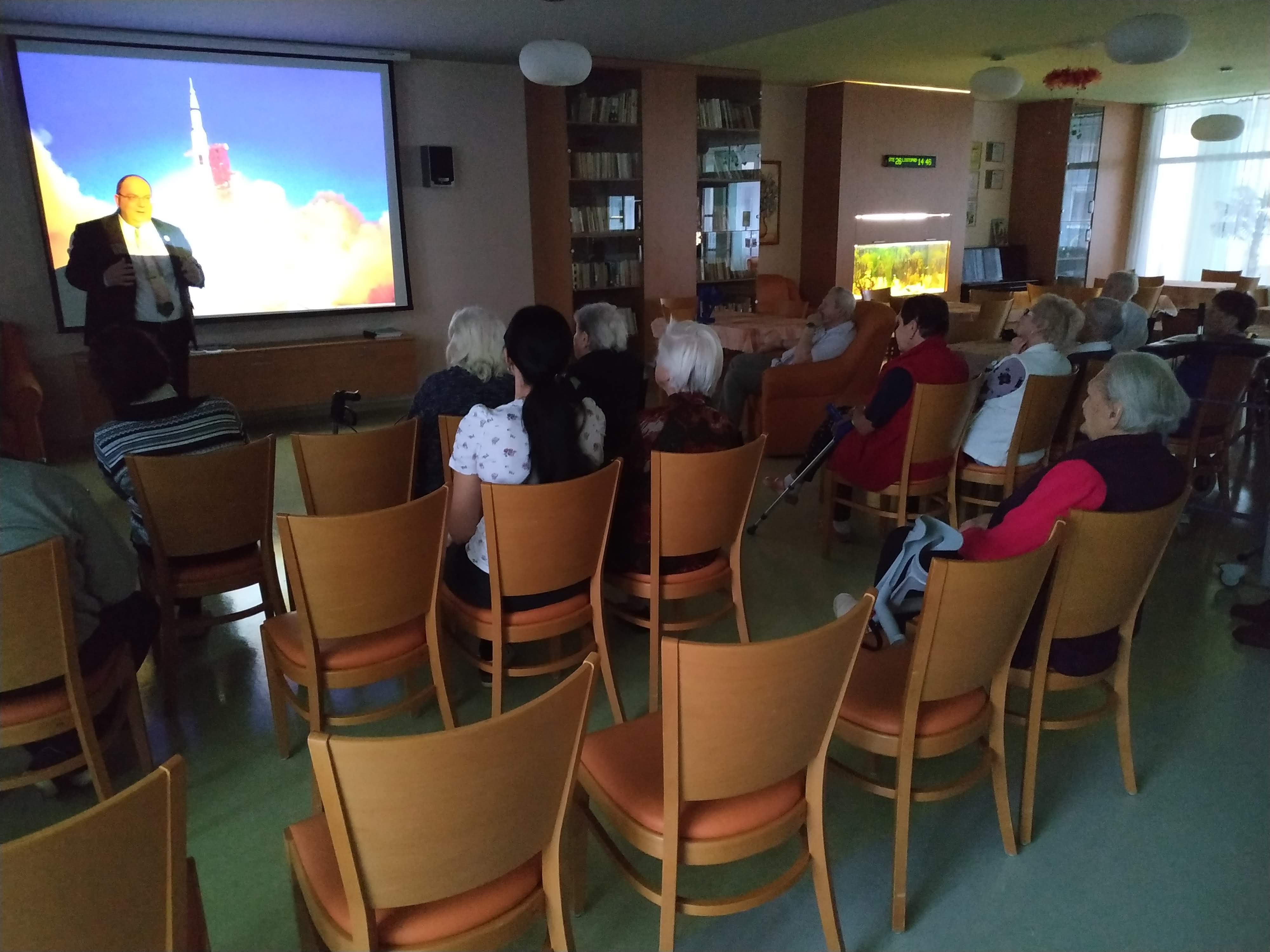 Pan Ing. Tomáš Přibyl z Technického muzea v Brně nás poutavou přednáškou seznámil se zajímavostmi života astronautů ve vesmíru. Dozvěděli jsme se spoustu novinek a u mnohých se zasmáli.