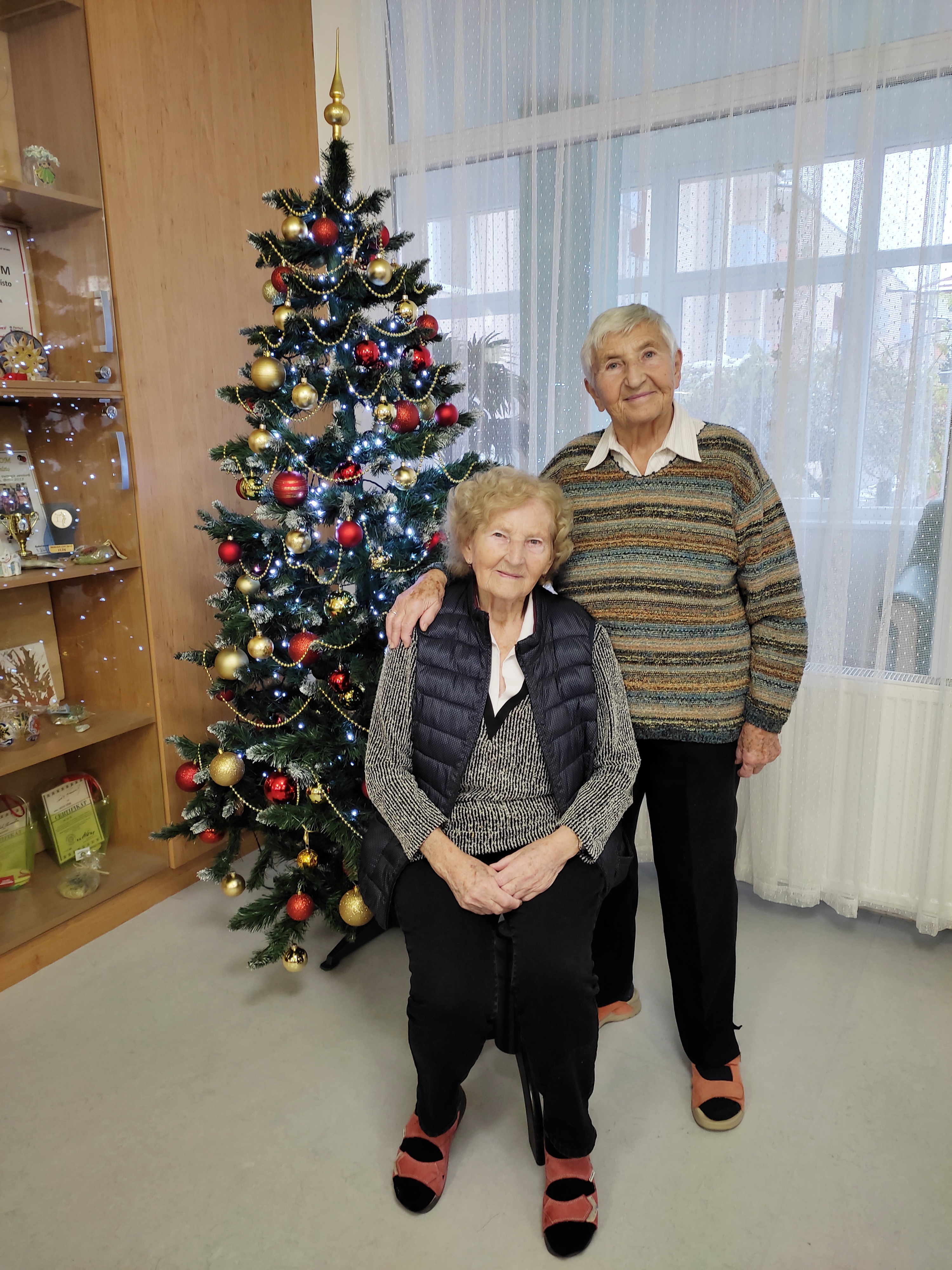 Společně jsme nazdobili vánoční stromek v jídelně.