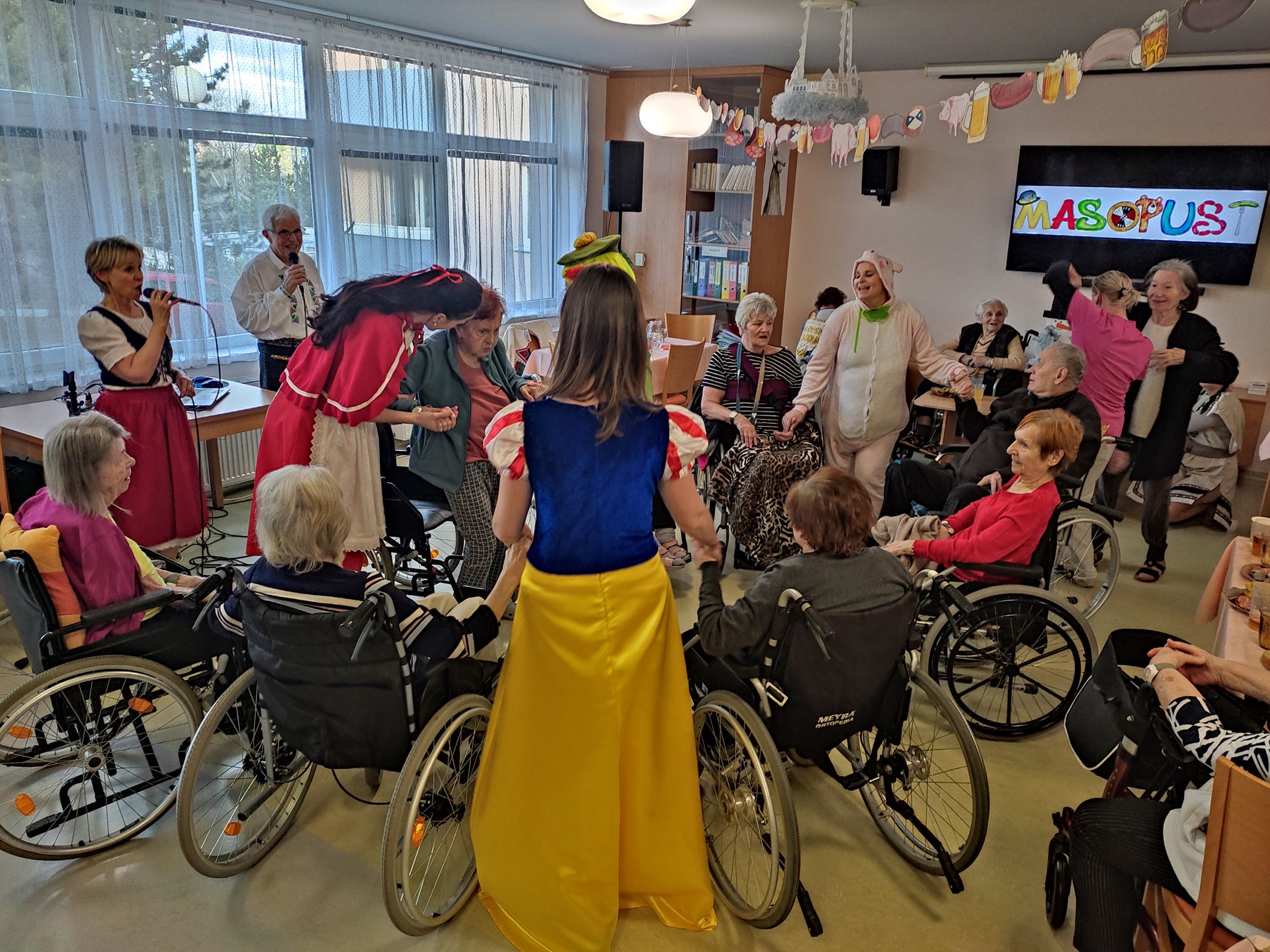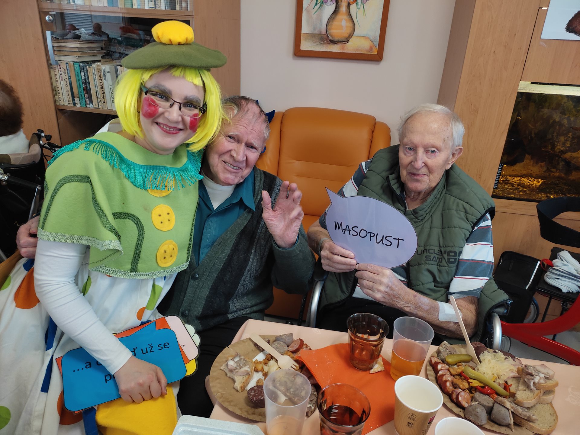 Rej masek s pochováním basy a k ochutnání produkty ze zabijačky a boží milosti.